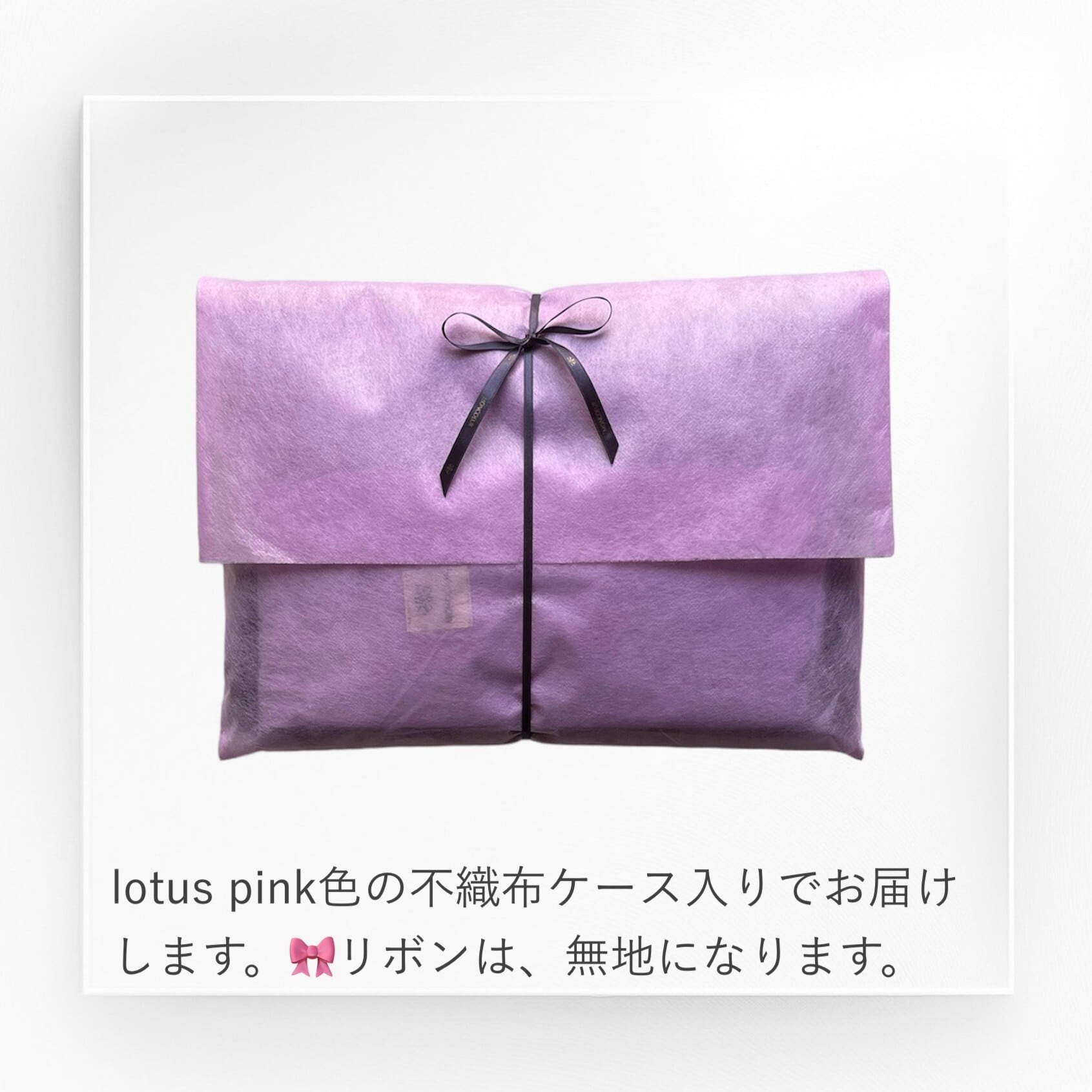 ⚪︎画像のロータスピンク色不織布ケース入り(リボン付き)でお届けいたします。※リボンは無地になります。