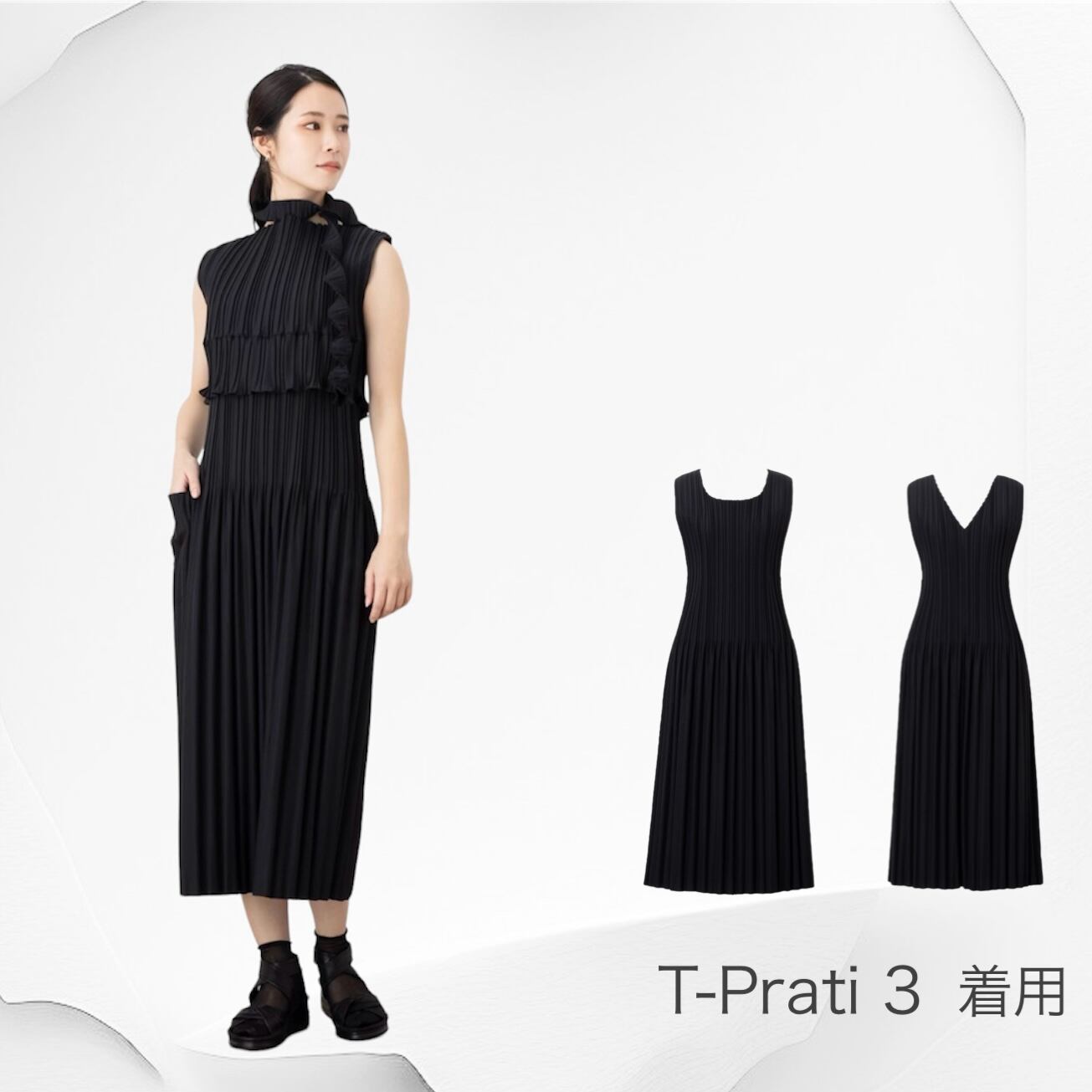 さまざまな方にやさしくフィット 体型もカバーし、プリーツの縦ラインでスタイルアップが叶います。